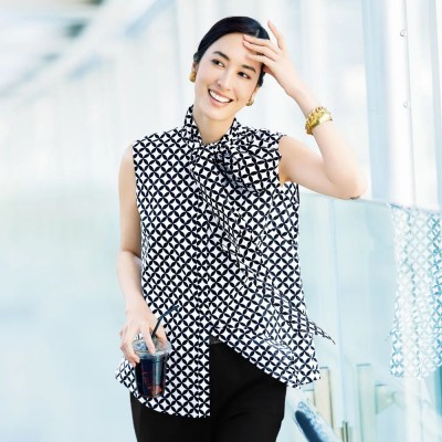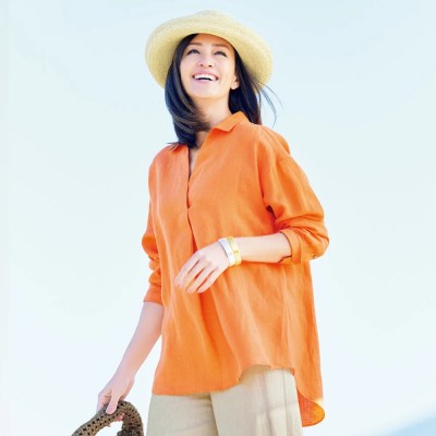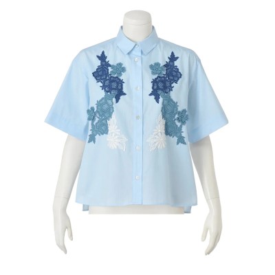 コットンダンガリー素材 マルチWAYフリルブラウス